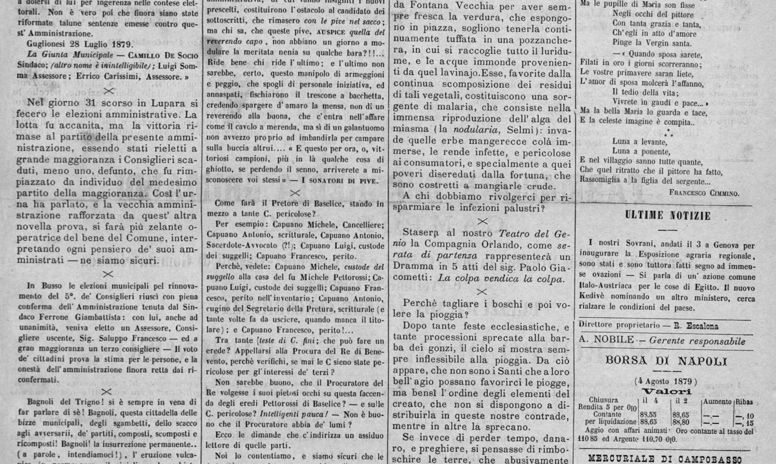 Ecco gli estratti delle recensioni pubblicate su La Libertà di Campobasso nel mese di luglio 1879: